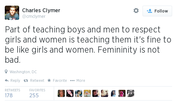 3. Threatening inhumanity - Many men's Clean-Armpit Feminisms include the notion that men are "oppressed too" (if they are willing to work with the notion that women are oppressed) or "suffer" comparatively to women (if they don't want to bother manipulating around silly words like "oppression" -- see "Threatening isolation"). This axiom is often meant as a stepping stone to other notions, such as how men "should be included in feminism" or "need feminism". If women do not acknowledge that men are "hurt by patriarchy" or are oppressed too, there is the risk of seeming indifferent to the many individual men who experience violence in ways that can be reasoned to be part of the system they are resisting; men who "are raped" in prison, for example, or men who "are told" they can't cry. This is emotional coercion, as evidenced by the complete obfuscation of who is responsible for all of this violence -- that is, other men. Other men rape men in prison, other men tell men to bottle their emotions. But this is usually not a very Clean-Armpit Feminist thing to notice.